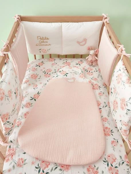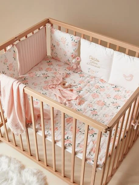 Côté parents, on apprécie de créer un joli petit nid douillet avec le tour de lit / tour de parc Eau de Rose. Jeu de matières, fleurs raffinées et détails brodés : rien n’est trop beau pour votre bébé !