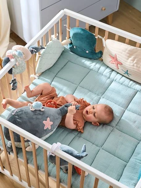 A la fois déco, confortable et anti choc, le tour de lit / tour de parc rassure les enfants en les entourant de douceur et en reproduisant le cocon de la maternité. Bébé pourra s’éveiller en toute sécurité, sans risquer de se cogner contre les barreaux.