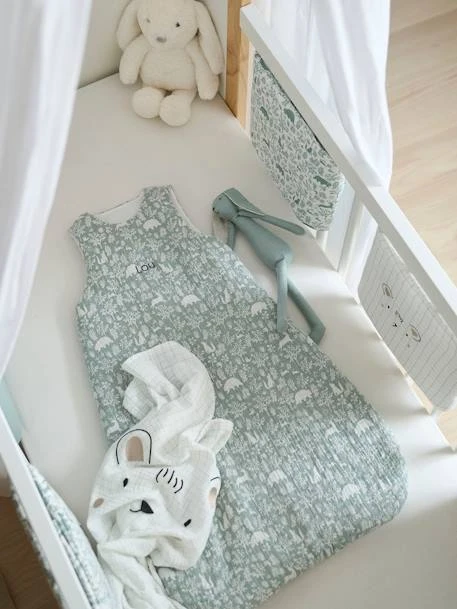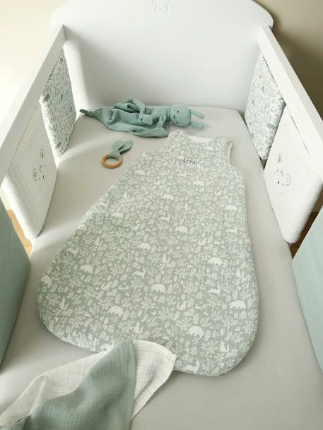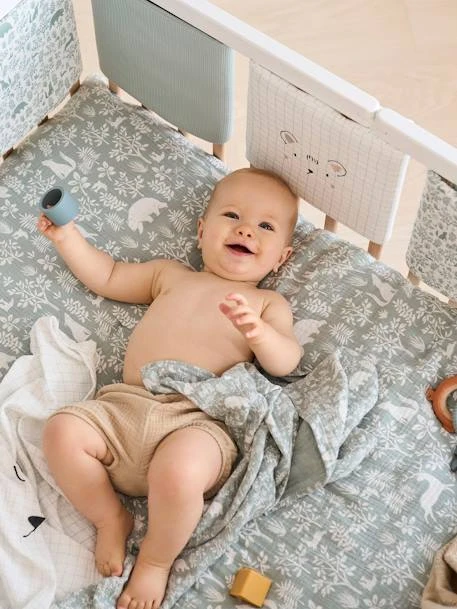 Côté parents, on apprécie de créer un joli petit nid douillet avec le tour de lit / tour de parc Dans les bois. Gaze de coton, jolis motifs de la forêt, détails brodés : rien n’est trop beau pour votre bébé !