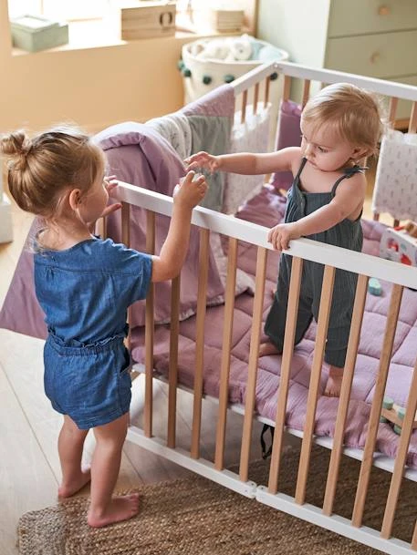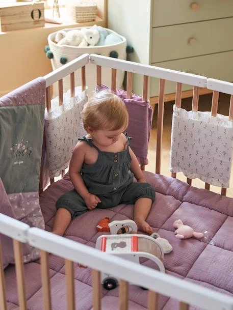 - S’adapte sur la plus grande majorité des lits à barreaux grâce à son système de bandes auto agrippantes.