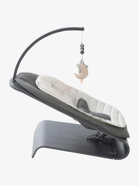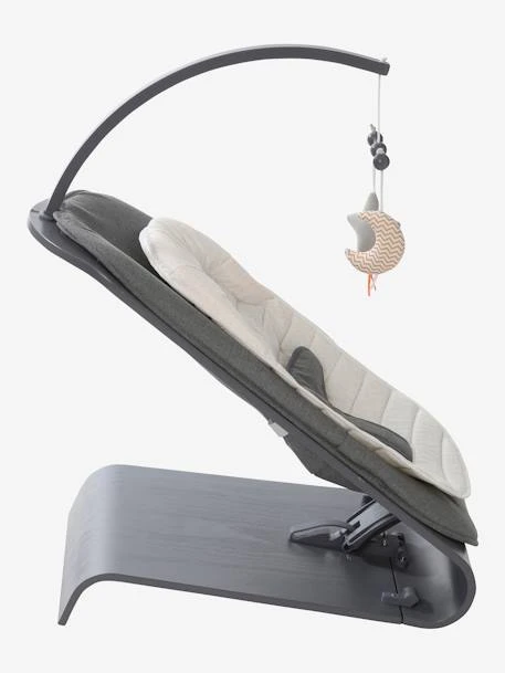 Le transat Babyrythm vertbaudet est pourvu d’une assise molletonnée confortable avec réducteur et d’une arche de jeux pour les activités d’éveil.
